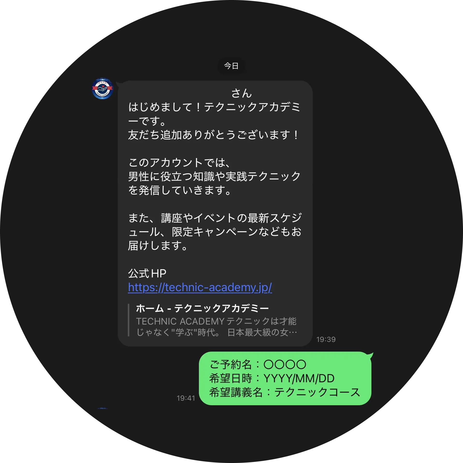 以下のフォーマットに沿って、LINEにメッセージをお送りください。