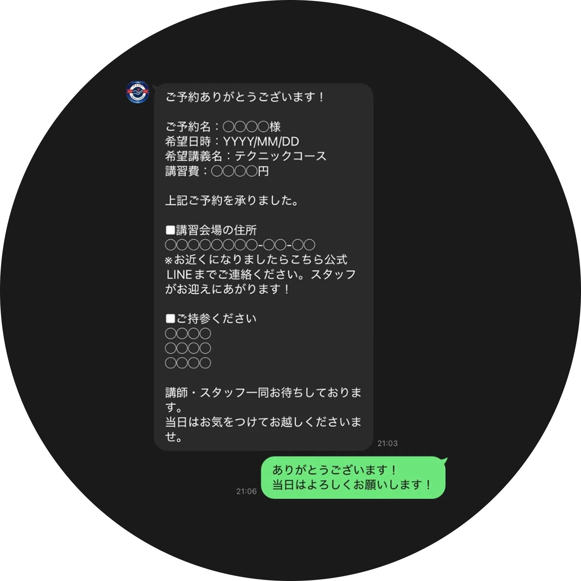 予約確定のご連絡