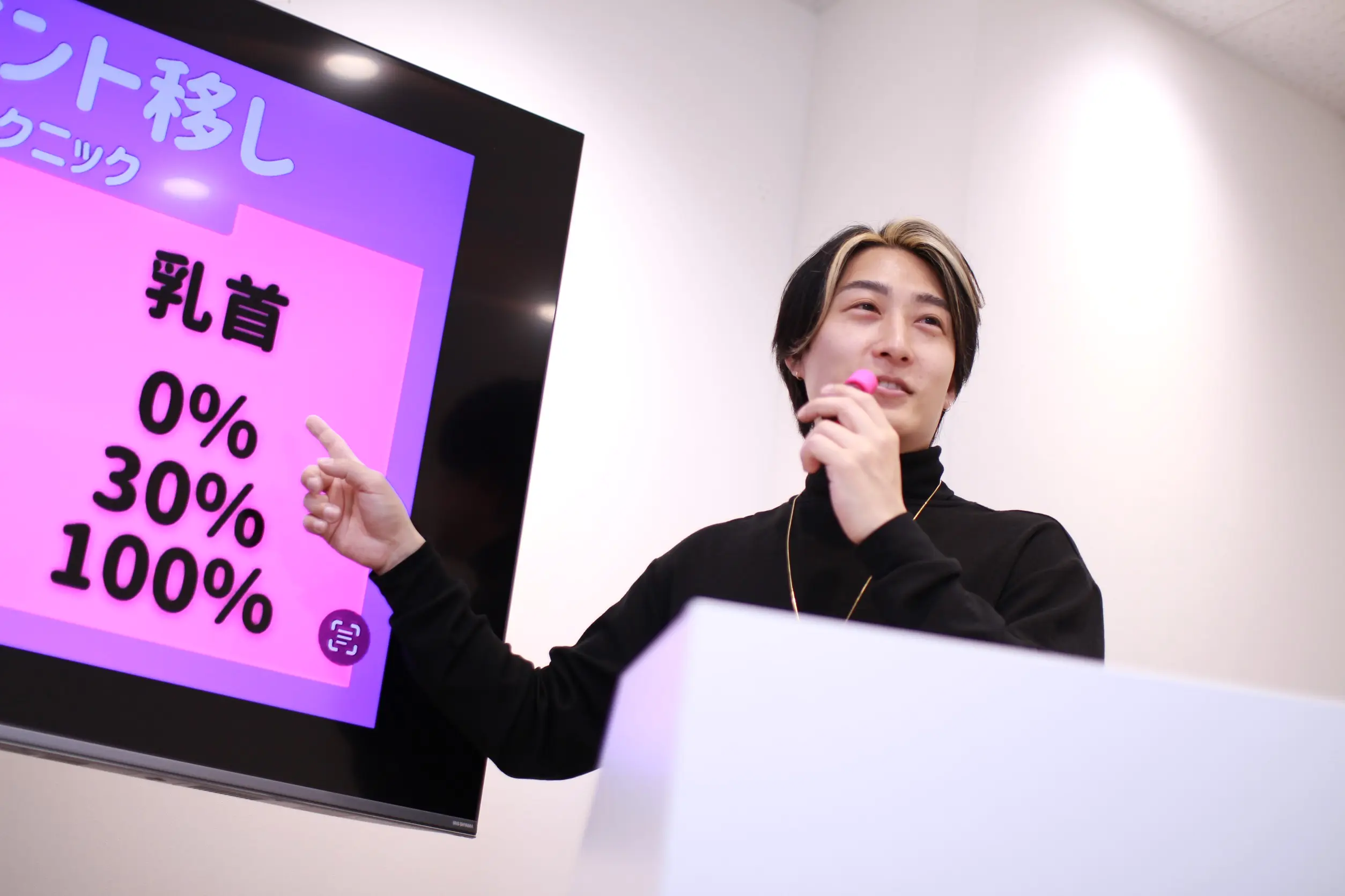 3040にてトップ講師を務める三門が担当する実践的なテクニック講習です。実際のモデルを招き、限りなく本環境に近い状態で「ベッドエスコート」から「手技」「口技」等をレクチャーしていきます。